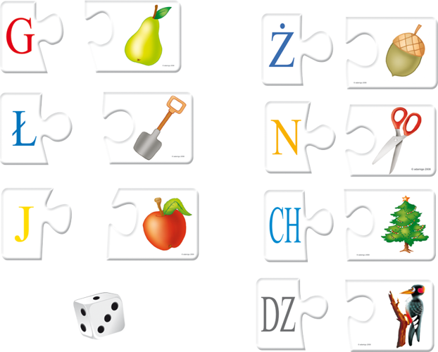 Gra sprawdzi się na etapie nauczania początkowego w szkole oraz podczas zabaw w domu. Puzzle są skutecznym sposobem dydaktycznym, dzięki któremu Twoje dziecko zaznajomi się z podstawowymi literkami. Zestaw zawiera 30 par puzzli i kostkę do gry.
