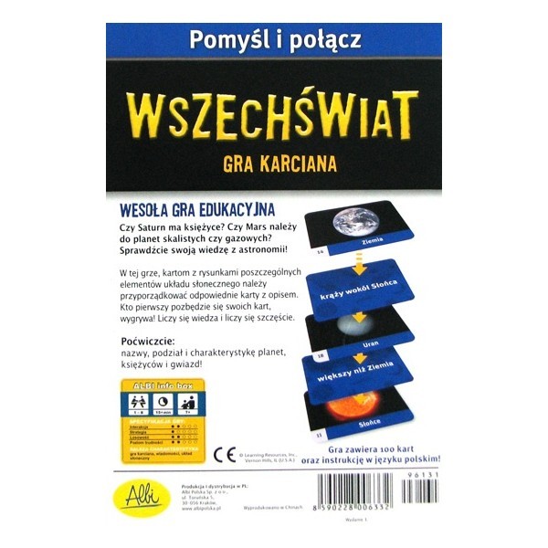 Albi Gra Karciana Wszechświat Pomyśl i połącz – wesoła gra edukacyjna. Czy Saturn ma księżyce? Czy Mars należy do planet skalistych czy gazowych. Sprawdźcie swoją wiedzę z astronomii!