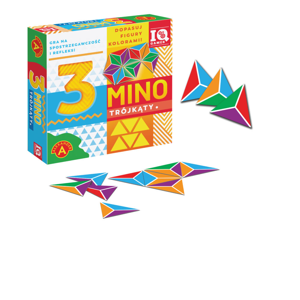 Nowa propozycja z lubianej przez wszystkich miłośników łamigłówek serii IQ Games przypadnie do gustu graczom, którzy lubią dynamiczną rozgrywkę. 3-Mino to świetny trening spostrzegawczości i refleksu. Rozgrywka rozpoczyna się od ułożenia na środku stołu figury w kształcie trójkąta. Zadaniem uczestników jest jak najszybsze dopasowanie kolorowych trójkątów z własnych zasobów, tak, aby stykały się z już ułożonymi na stole krawędziami i takimi samymi kolorami. Znakomitym urozmaiceniem są dwa poziomy trudności, które pozwolą na satysfakcjonująca zabawę początkującym, jak i bardziej zaawansowanym. Natomiast wybór spośród dwóch wariantów gry pozwala uporządkować rozgrywkę na 10-sekundowe tury jednego gracza lub postawić na większy chaos i układanie trójkątów jednocześnie przez wszystkich rywali.