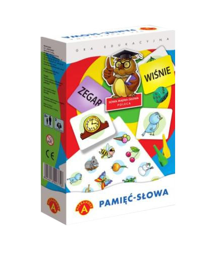 Pamięć - słowa to gra, której uczestnicy odkrywają kolejno po 2 tabliczki spośród wszystkich rozłożonych na stole rewersem do góry, by znaleźć pasujące do siebie pary: obrazka i słowa. Jeśli odkryte tabliczki pasują do siebie to stają się własnością gracza.