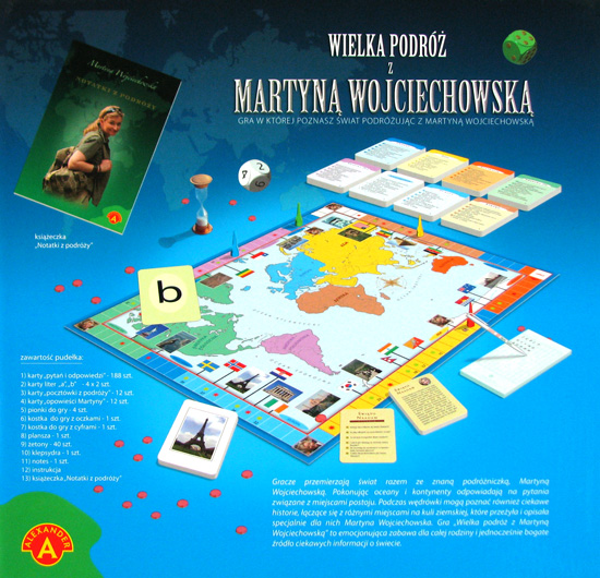 Wielka Podróż to emocjonująca zabawa dla całej rodziny i bogate źródło ciekawych informacji o świecie. Gracze przemierzają świat razem ze znaną podróżniczką, Martyną Wojciechowską. Pokonując oceany i kontynenty, odpowiadają na pytania związane z miejscami postoju. Podczas wędrówki mogą poznać również ciekawe historie, łączące się z różnymi miejscami na kuli ziemskiej, które przeżyła i opisała specjalnie dla nich Martyna Wojciechowska.