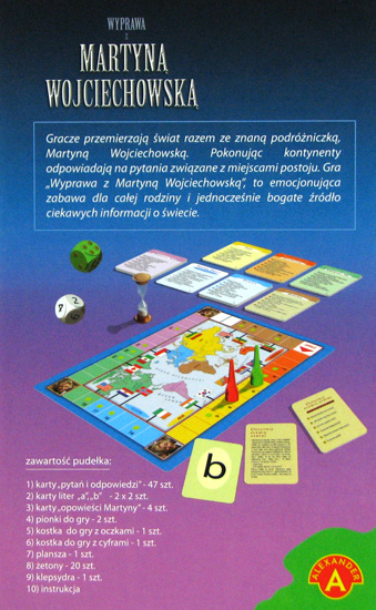 Wyprawa to emocjonująca zabawa dla całej rodziny i bogate źródło ciekawych informacji o świecie. Gracze przemierzają świat razem ze znaną podróżniczką, Martyną Wojciechowską. Pokonując kontynenty, odpowiadają na pytania związane z miejscami postoju. Podczas wędrówki mogą poznać również ciekawe historie, łączące się z różnymi miejscami na kuli ziemskiej, które przeżyła i opisała specjalnie dla nich Martyna Wojciechowska.