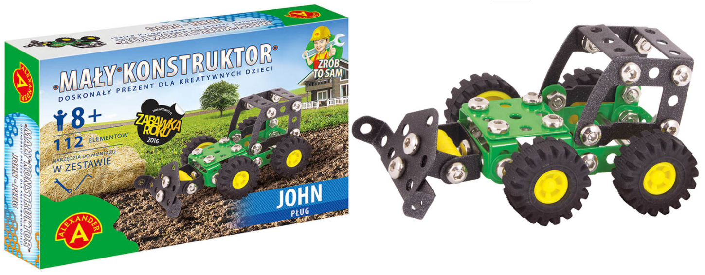Mały Konstruktor to seria zabawek do samodzielnego montażu, rozwijająca zdolności manualne oraz wyobraźnię przestrzenną. Każdy model składa się z elementów metalowych o różnej wielkości i kształtach, a także jest wzbogacony kolorowymi elementami z tworzyw sztucznych. Dzięki dołączonemu zestawowi narzędzi, można zbudować wyjątkowy pojazd zgodnie ze wskazaniami instrukcji lub wedle własnej wyobraźni. Model po złożeniu jest trwałay i swobodnie może służyć do dalszej zabawy. To idealny wstęp do rozbudzenia w dziecku pasji inżyniera. Zabawka która łączy pokolenia, zachęcając do wspólnego majsterkowania.