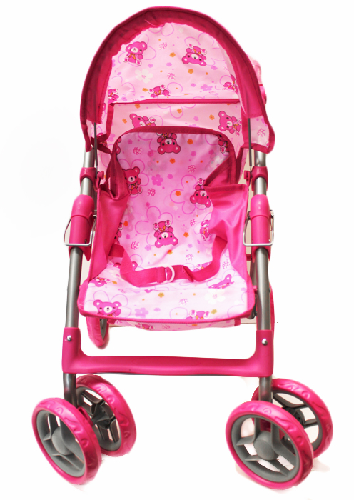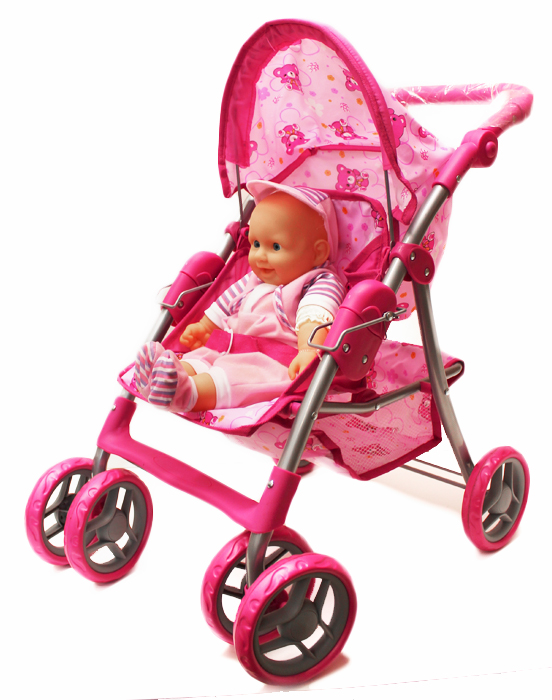 Alexis Wózek dla Lalek Spacerówka 9352 wykonany jest z trwałej, metalowej konstrukcji. Wyposażony jest w pasy bezpieczeństwa, które mają za zadanie przytrzymać lalkę oraz duży koszyk na drobne akcesoria. Dziewczynka, jak prawdziwa mama, może tam schować buteleczki, pieluszki a nawet ubranka na zmianę. Dodatkowym atutem jest także podnóżek oraz składany daszek chroniący przed deszczem i wiatrem. Rączką osłonięta jest miękką pianką a gumowe kółka nie tylko są ciche ale i chronią podłogę przed zarysowaniem.