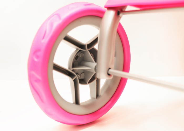 Alexis Wózek dla Lalek Spacerówka 9353 wykonany jest z trwałej, metalowej konstrukcji. Wyposażony jest w pasy bezpieczeństwa, które mają za zadanie przytrzymać lalkę oraz duży koszyk na drobne akcesoria. Dziewczynka, jak prawdziwa mama, może tam schować buteleczki, pieluszki a nawet ubranka na zmianę. Dodatkowym atutem jest także podnóżek oraz składany daszek chroniący przed deszczem i wiatrem. Rączką osłonięta jest miękką pianką a gumowe kółka nie tylko są ciche ale i chronią podłogę przed zarysowaniem.