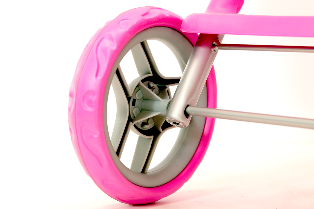 Alexis Wózek dla Lalek Spacerówka z Tacką 9366-T wykonany jest z trwałej, metalowej konstrukcji. Wyposażony jest w pasy bezpieczeństwa, które mają za zadanie przytrzymać lalkę oraz duży koszyk na drobne akcesoria. Dziewczynka, jak prawdziwa mama, może tam schować buteleczki, pieluszki a nawet ubranka na zmianę. Dodatkowym atutem jest także podnóżek oraz składany daszek chroniący przed deszczem i wiatrem. Rączką osłonięta jest miękką pianką a gumowe kółka nie tylko są ciche ale i chronią podłogę przed zarysowaniem.