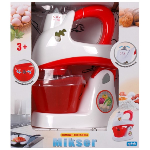 Anek mikser to niezastąpione i niezbędne urządzenie w każdej dziecięcej kuchni. Mikser ma ruchome mieszadła, mogą się poruszać w trybie ręcznym lub automatycznym. Wydaje dźwięki jak prawdziwy, wyposażony jest także w elementy dające efekt świetlny.