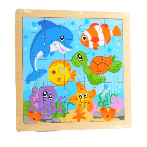 Drewniane puzzle z kolorowymi obrazkami pozwolą dziecku uczyć się poprzez zabawę. Przepiękna kolorystyka oraz solidne wykonanie zapewnią twojemu dziecku wielogodzinną zabawę. Zabawka świetnie nadają się do ćwiczenia spostrzegawczości, rozwijają wyobraźnię i pamięć. Uczą różnicowania kształtów, kolorów, ćwiczą sprawność manualną małych rączek. Puzzle składają się z 25 elementów.