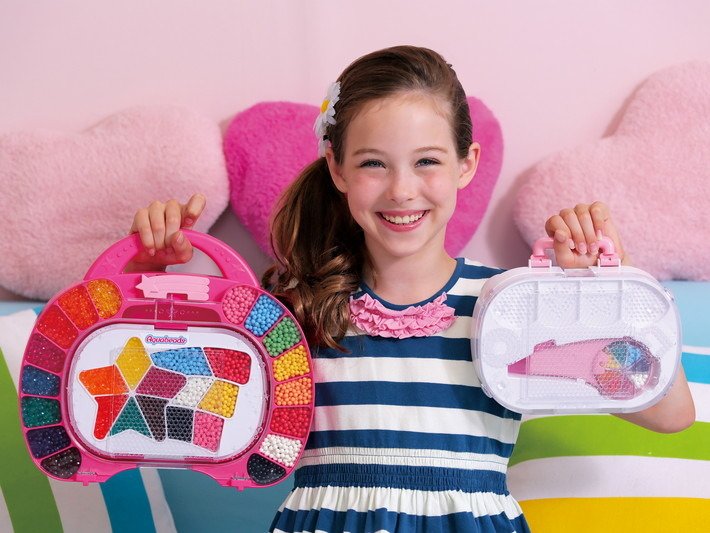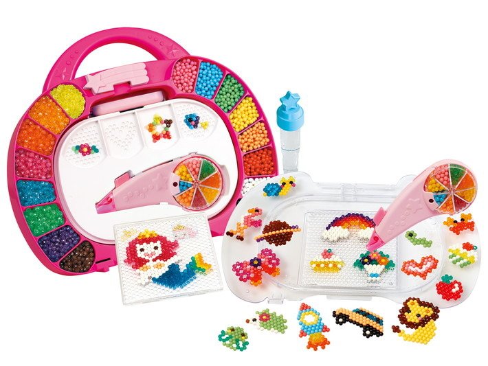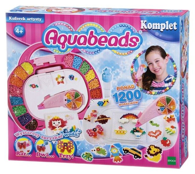 Dzięki wspaniałemu kuferkowi Aquabeads, możesz tworzyć własne ozdoby i prezenty dla najbliższych. Użyj ponad 1200 koralików w 16 kolorach, aby tworzyć błyszczące projekty z Aquabeads. Już teraz możesz stworzyć serce, motylka, kokardki, tęczę, autka a nawet smakowicie wyglądające lody. Wybierz odpowiedni szablon, połóż na nim tackę do układania i stwórz właściwy wzór! Następnie spryskaj koraliki wodą, a zobaczysz jak magicznie się do siebie przykleją tworząc jedną całość!