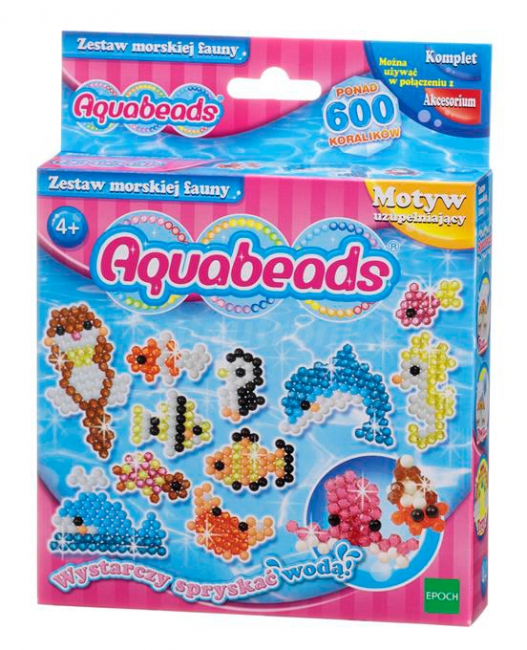 Dzięki temu zabawnemu zestawowi Aquabeads, możesz tworzyć własne morskie stworzenia. Użyj ponad 600 koralików w 9 kolorach, aby tworzyć życie w morzu z Aquabeads. Już teraz możesz stworzyć delfina, konika morskiego, pingwina, a nawet ośmiornicę. Wybierz odpowiedni szablon, połóż na nim tackę do układania i stwórz właściwy wzór! Następnie spryskaj koraliki wodą, a zobaczysz jak magicznie się do siebie przykleją tworząc jedną całość!