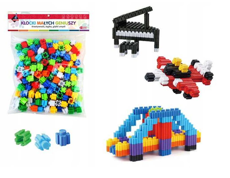 Zabawa klockami ćwiczy zdolności manualne, wypracowuje technikę, która pozwoli dziecku radzić sobie w świecie pełnym barw. Dostosowane do możliwości poznawczych dzieci wspierają ich rozwój. Pomagają kształtować wyobraźnię przestrzenną, ćwiczyć koordynację ręka-oko, zdolności manualne i kreatywność.