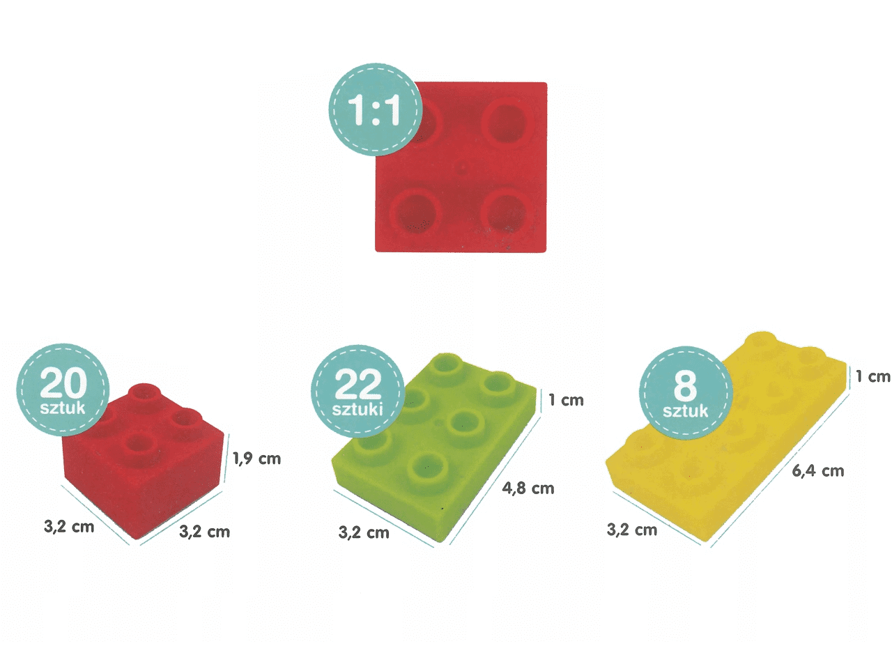 Miękkie klocki to idealna propozycja dla maluszków już od 6 miesiąca życia. W zestawie znajduje się 50 kolorowych, elastycznych klocków. Klocki są rozciągliwe, lekkie i dostosowane do małych rączek dziecka. Maluszek może brać je do buzi, bawić się nimi w wannie czy na dywanie w pokoju.