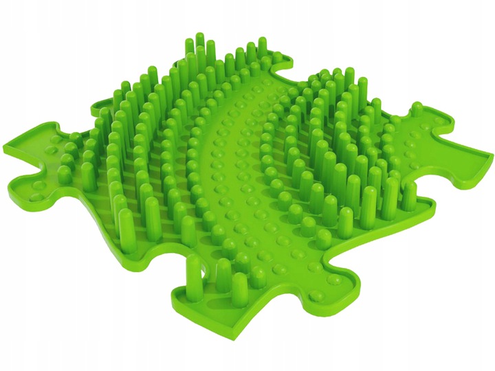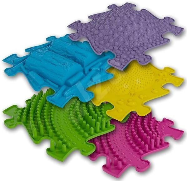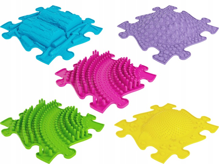 Zabawy sensoryczne pomagają dzieciom odpowiednio stymulować zmysły. Poprzez nadeptywanie bosymi stopami i kładzenie rąk na sensoryczne puzzle dziecko pobudza receptory, które się na nich znajdują. Stosowanie zestawu pomaga wzmocnić mięśnie stopy, zapobiega i koryguje rozwój płaskostopia, wzmacnia środek ciała oraz zapewnia równowagę i stabilność. Regularne stosowanie maty pomaga korygować koślawości stóp u dzieci.