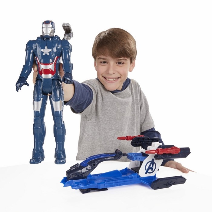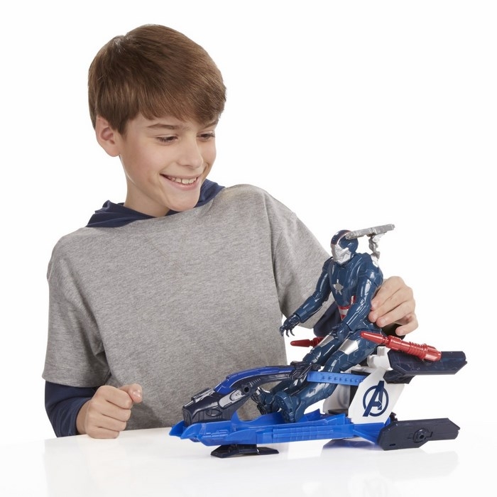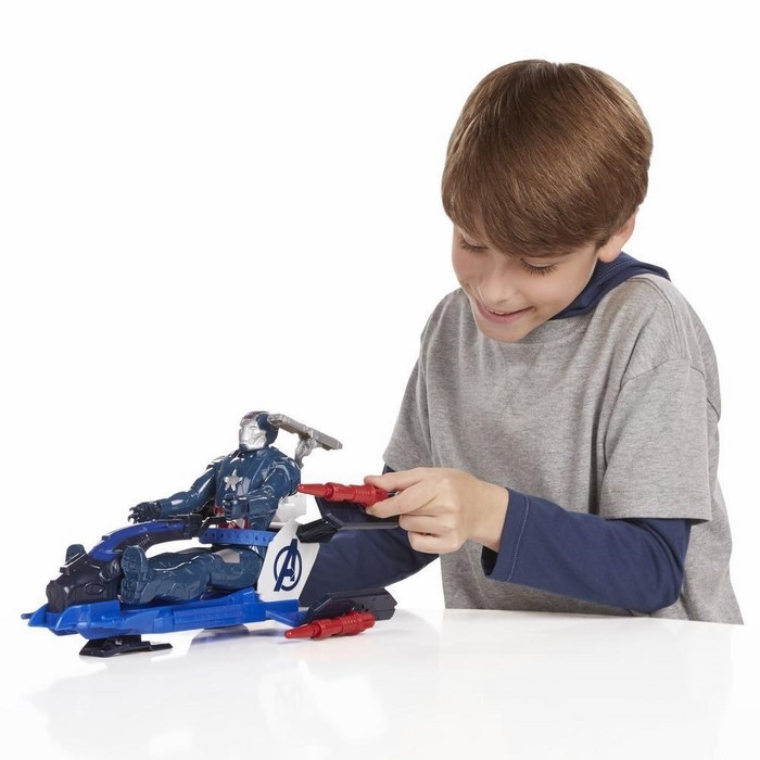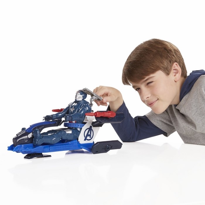 Dzięki nowym, większym figurkom Tytan wyposażonym w pojazdy, bitwy dobra ze złem przeniosły się na wyższy poziom! Każda z postaci ma 5 punktów artykulacji i własny pojazd, który pasuje do większości pozostałych bohaterów Avengers.