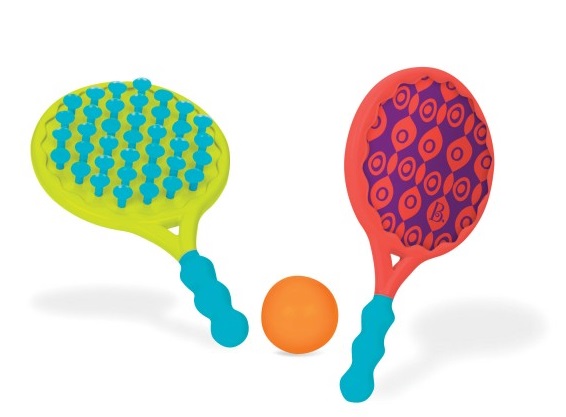 Zestaw dwustronnych rakietek z piłeczką dla dzieci w wieku 3 – 8 lat. Zestaw jest idealny do zabawy na plaży, w ogrodzie czy w domu. Zabawka nie zawiera ftalanów ani BPA (bisfenolu A)