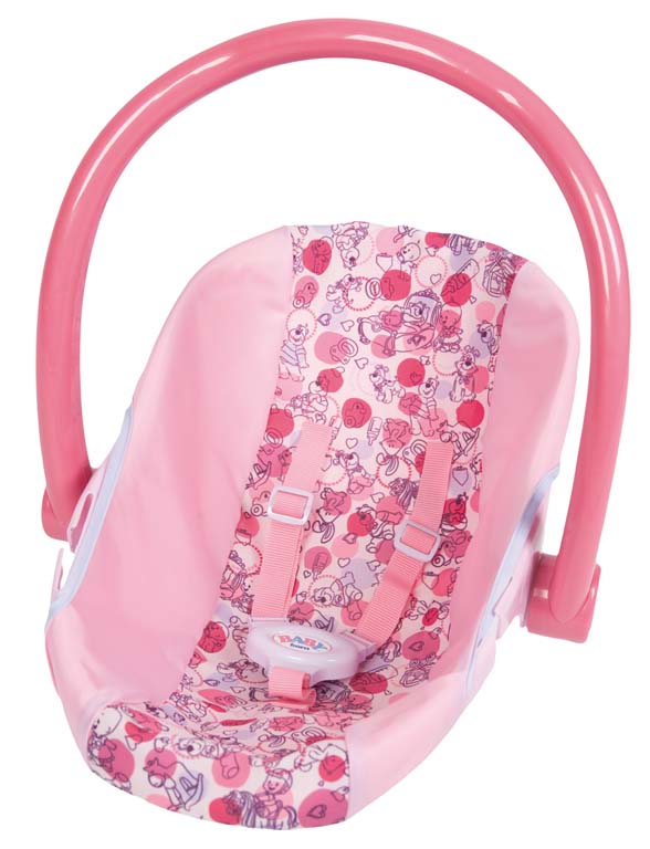 Nosidełko dla laleczki Baby born to kolejny, niezwykle praktyczny i ładny dodatek. Ten różowy, przenośny fotelik z wygodną rączką i szelkami zabezpieczającymi lalkę, pozwoli zabrać 'dziecko' na każdą wycieczkę czy spacer. Można je również wykorzystać jako kołyskę, krzesełko i fotelik samochodowy. Nosidełko jest przeznaczone dla lalek o wysokości 43 cm.