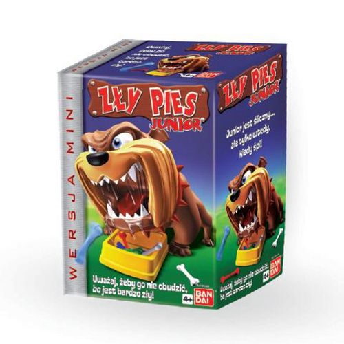 Junior jest śliczny ale tylko wtedy kiedy śpi. Uważaj, żeby go nie obudzić bo jest bardzo zły. Przygotuj Złego Psa Juniora do gry. Grę zaczyna najmłodszy gracz. Wybiera kość, którą następnie wciska w miskę. Jeśli Junior śpi, kolejny gracz wybiera kość i ją naciska. Jeśli Junior się obudzi - gracz odpada z gry, żeby kontynuować grę, trzeba położyć Juniora spać. Gra trwa do momentu aż zostanie tylko jeden gracz, który nie był "ugryziony" przez Juniora. Ten gracz jest zwycięzcą. Ta podręczna wersja Złego Psa jest idealna w podróży, można w nią grać wszędzie! Dodatkowo elementy są zamontowane na stałe, nie zgubią się podczas podróży.