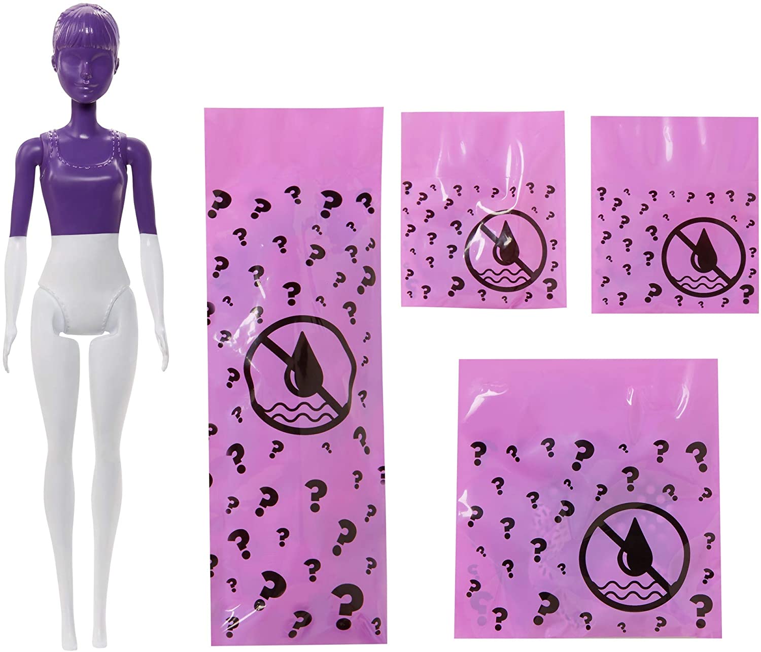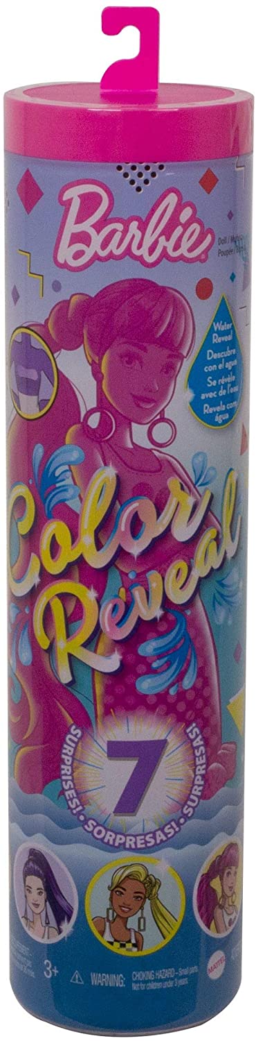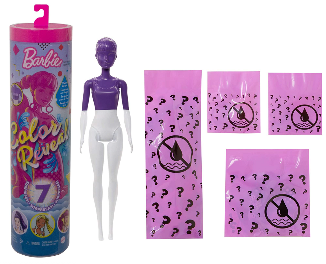 Barbie kolorowa niespodzianka to lalka, która wraz z akcesorami zamknięta jest w tubie. Z dużym zaciekawieniem dziewczynki będą otwierać tubę, gdyż nie wiedzą, którą z 5 lalek mają w zestawie. Otwieramy tubę pociągając za pasek i w przezroczystej tubie ukazje nam się fioletowa lalka surprise, a w czterech saszetkach ukryte dodatki. Lalka ukazuje się dopiero po zanurzeniu jej w ciepłej wodzie. Wtedy różowa warstwa zaczyna musować, a nam ukazuje się lalka, którą udało nam się otrzymać.
