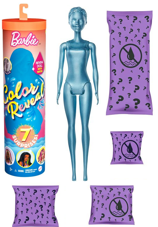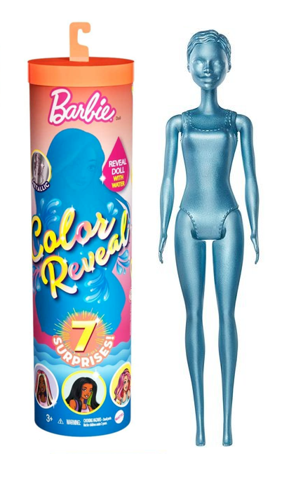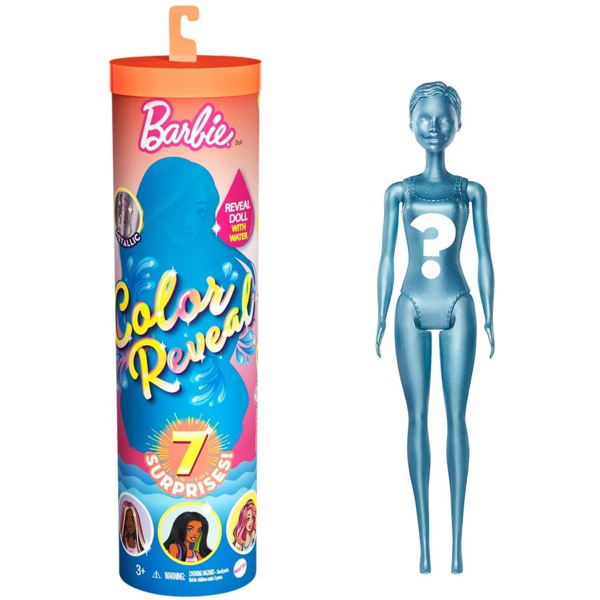 Barbie kolorowa niespodzianka to lalka, która wraz z akcesorami zamknięta jest w tubie. Z dużym zaciekawieniem dziewczynki będą otwierać tubę, gdyż nie wiedzą, którą z 5 lalek mają w zestawie. Otwieramy tubę pociągając za pasek i w przezroczystej tubie ukazje nam się różowa lalka surprise, a w czterech saszetkach ukryte dodatki. Lalka ukazuje się dopiero po zanurzeniu jej w ciepłej wodzie. Wtedy różowa warstwa zaczyna musować, a nam ukazuje się lalka, którą udało nam się otrzymać.