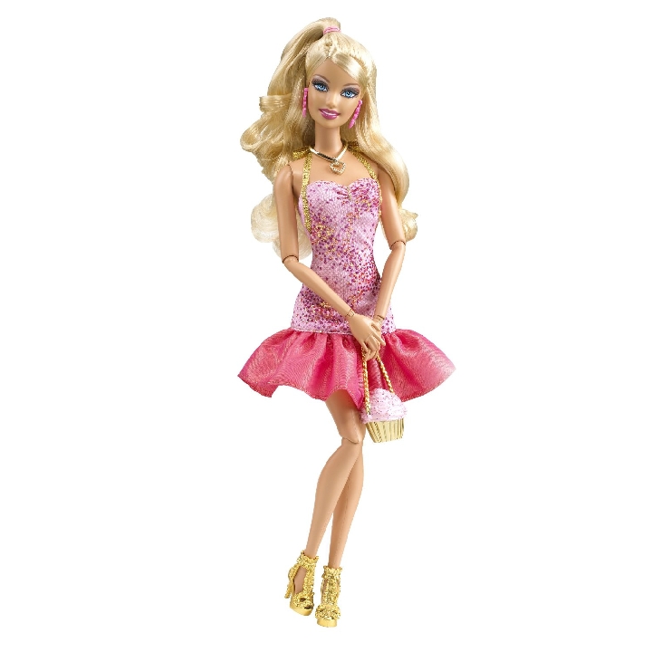 Wspaniała zabawa ze Sweetie Fashionists, która może przybierać ponad 100 różnych póz! Dzięki zginanym rękom i nogom oraz możliwości poruszania innymi częściami ciała tej lalki będzie ona tańczyć i bawić każdą dziewczynkę przez bardzo długi czas. Barbie Sweetie ubrana jest w słodką różową sukienkę, do której dodatkami są złoty naszyjnik, różowe kolczyki oraz złota torebka. Na nogach ma modne złote sandałki na obcasie zapinane z koło kostki.