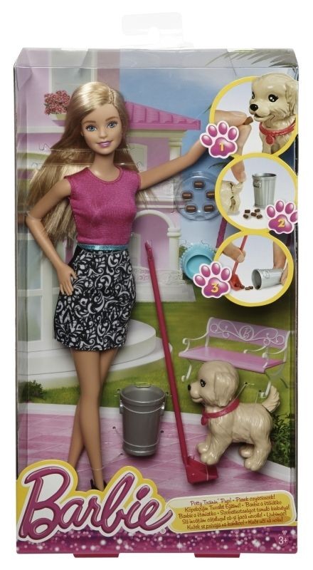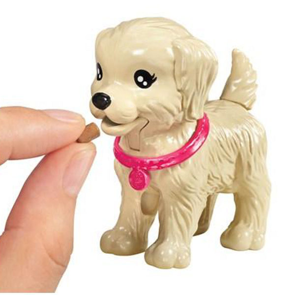 Bawiąc się tym zestawem, dziewczynki mogą pomagać lalce Barbie® w karmieniu jej uroczego pieska i opiece nad nim, a szczególnie w sprzątaniu, ponieważ to zachwycające zwierzątko naprawdę robi kupkę!
