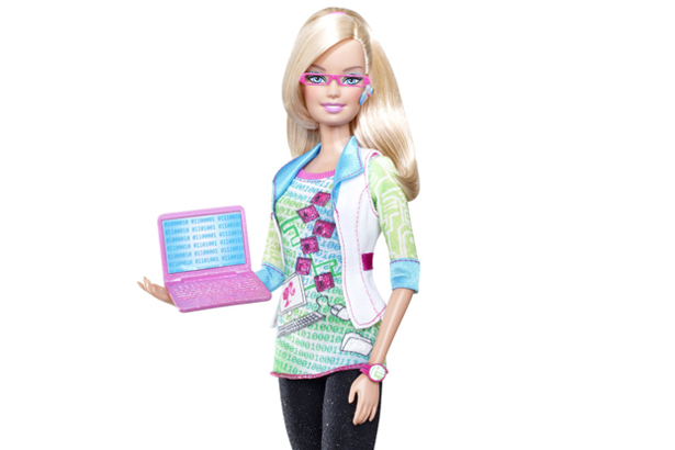 Barbie programuje! Teraz dziewczynki mogą się teraz wcielić w rolę specjalistki od komputerów i rozwiązywać informatyczne problemy. Lalka oferowana jest z kompletnym wyposażeniem informatyczki. Barbie posiada własnego laptopa i najnowszego iPhona.
