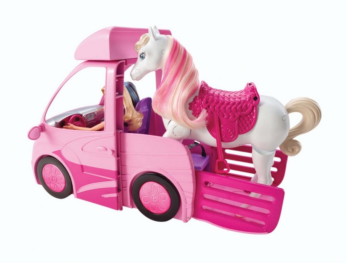 W nowym filmie Barbie jedzie wraz z siostrami do Szkoły Konnej. Podróżuj razem z Barbie i jej siostrami tym niesamowitym autem kembingowym. W aucie mieszczą się cztery lalki i konik. Lalek i konika nie ma w zestawie!