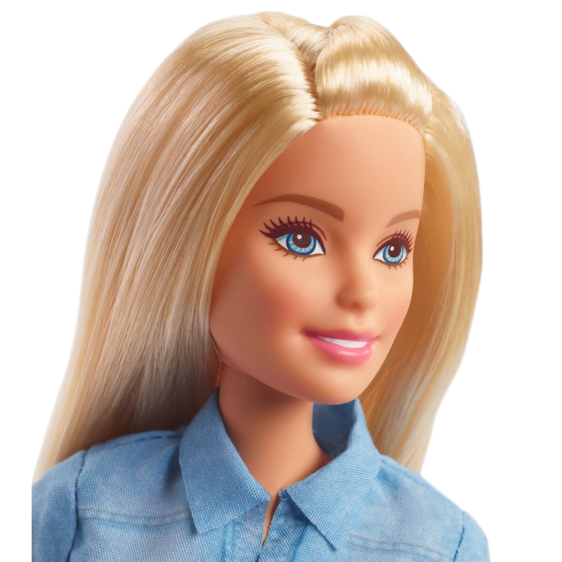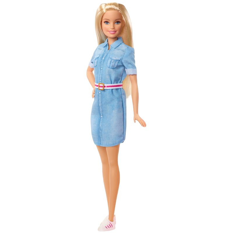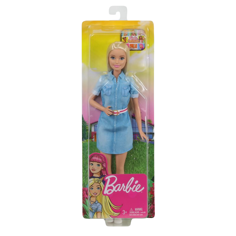 Lalka posiada ruchome ramiona i głowę i sięgające do pasa włosy w kolorze jasnego blondu. Ubrana jest w jeansową sukienkę z krótkim rękawkiem. Całość uzupełniają pasek oraz sportowe buty. Modna lalka będzie doskonałą towarzyszką dla każdej dziewczynki, która lubi zabawkę lalkami, ale także stanie się doskonałym rozpoczęciem lub uzupełnieniem kolekcji lalek Barbie.