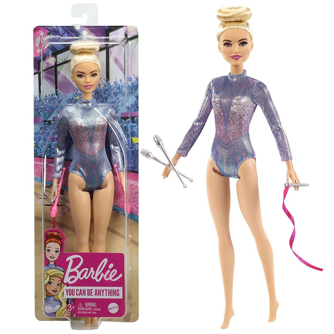 Barbie od dziecka marzyła, by zostać sprofesjonalną gimnastyczką. Barbie jak przystało na profesjonalistke i perfekcjonalistkę ubrana jest w profesjonalny stój gimnastyczny. W zestawie jest oczywiście także szarfa gimnastyczna oraz pałki. Teraz wystarczy tylko zabrać swoją laleczkę i ruszyć na trening, bo nie od dziś wiadomo, że sport to zdrowie. W zestawie znajdują się także tematyczne akcesoria.