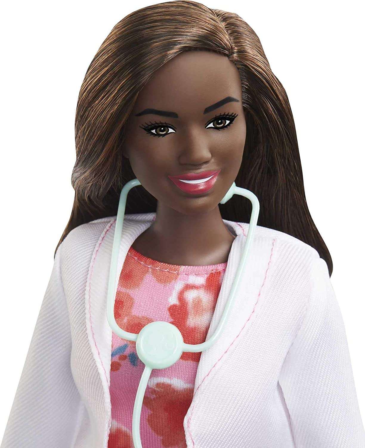 Barbie od dziecka marzyła, by zostać lekarzem. W spełnienie swojego marzenia włożyła wiele wysiłku i pracy. Dzięki temu została świetnym specjalistą. Barbie ma cudowne podejście do swoich pacjentów, których wprost uwielbia. Zawsze dokłada wszelkich starań, by im pomóc. W zestawie znajdziesz ciemnoskórą klasyczną lalkę Barbie, ubraną w biały kitel, kolorową sukienkę oraz wygodne buty. Na szyi laleczka ma przewieszony stetoskop.