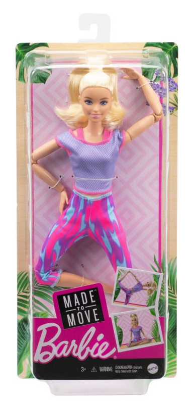 Barbie® jest zawsze w ruchu, a teraz potrafi poruszać się na jeszcze więcej sposobów! Lalka Barbie® Made To Move™ może zrobić wszystko, co zechcesz. W łatwy sposób pozwala na odegranie rozmaitych scenek, ponieważ można ją poruszać i ustawiać w bardzo realistyczny sposób. Barbie® sprawdzi się w każdej sytuacji: jazda na rowerze, gra na gitarze, domowa gimnastyka, siedzenie ze skrzyżowanymi nogami, chodzenie po wybiegu dla modelek czy robienie sobie zdjęć. Każda lalka ma aż 22 punkty artykulacji : w szyi, w ramionach, w łokciach, w nadgarstkach, w torsie, w biodrach, w udach, w kolanach i w kostkach. Zapewnia to fantastyczną elastyczność i niewiarygodny wręcz zakres ruchów! Zawsze modne lalki Barbie® Made To Move™ mają na sobie nowoczesne stroje: leginsy i kolorowe bluzki, które podkreślają ich dynamiczność. Nic już nie krępuje ani ruchów ani wyobraźni!