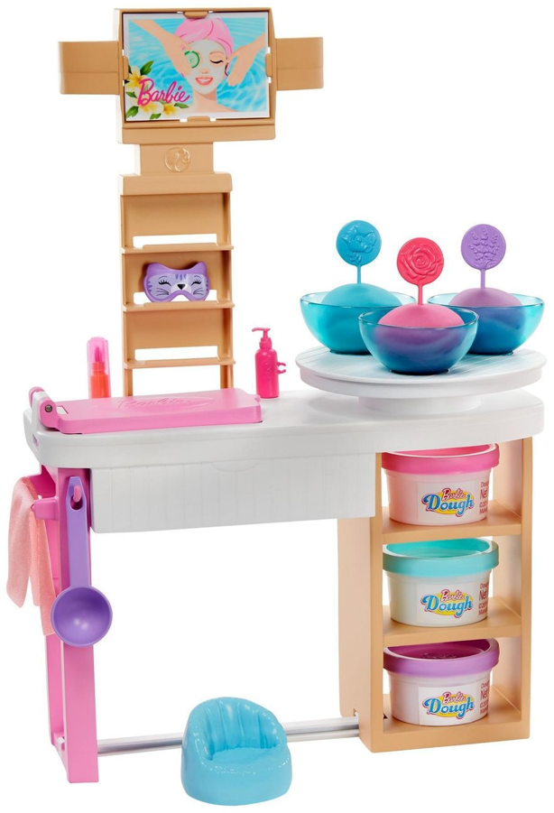 Tym razem Barbie postanowiła wybrać się do spa ze swoim pupilem. Ona wie, że aby czuć się dobrze, trzeba mieć czas na odpoczynek i zadbanie o siebie. Za pomocą masy plastycznej i foremek dołączonych do zestawu przygotujesz dla Barbie i jej szczeniaczka odżywcze i regenerujące maseczki oraz kosmetyki. W zestawie znajduje się także zmywalny pisak - użyj pisaka do zrobienia jej kropek na buzi i rozstaw stanowisko spa. Połóż maseczkę na twarzy lalki, a wszystkie niedoskonałości znikną w magiczny sposób! Dzieci pokochają odkrywanie różnych sposobów na relaks.