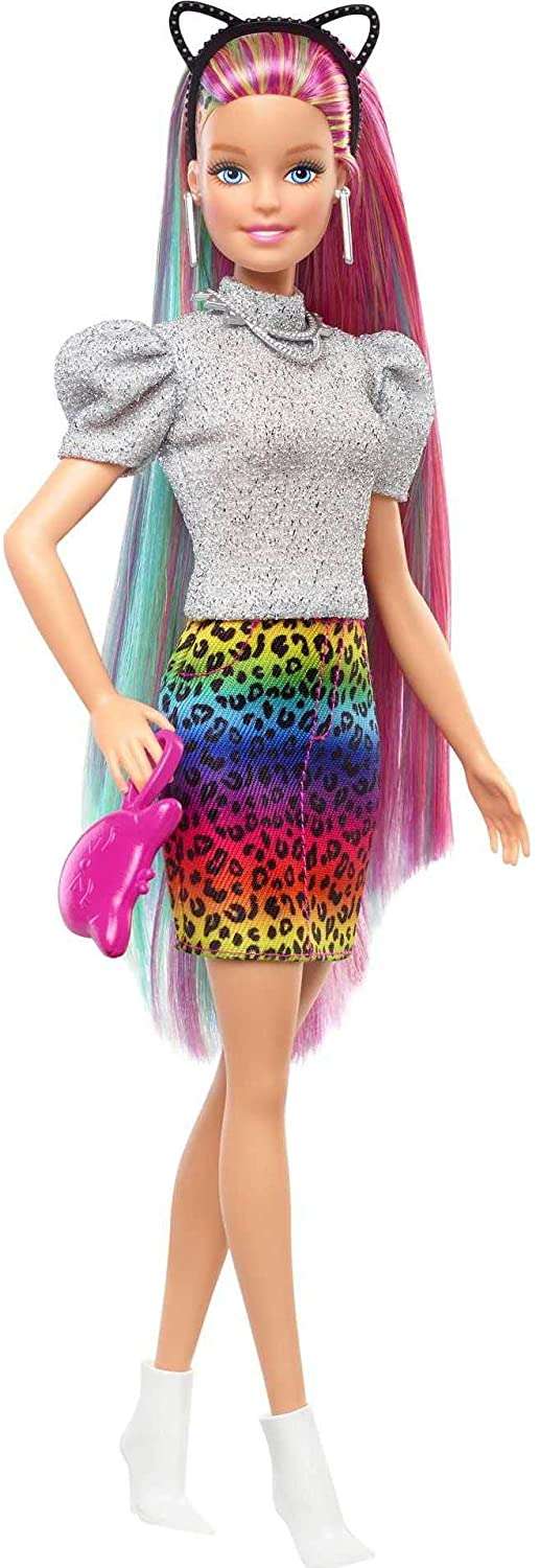Barbie Leopard Rainbow Hair Kolorowa panterka GRN81