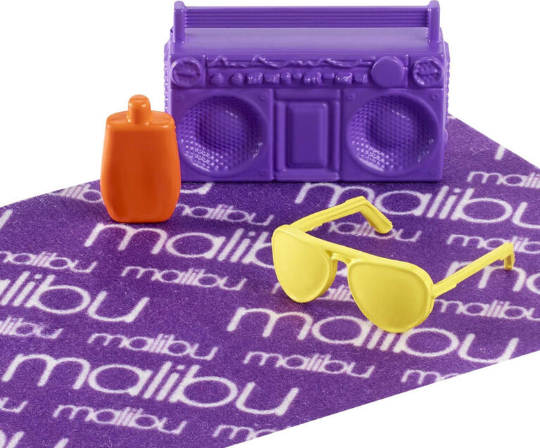 Zestaw ten inspiruje lalkę Barbie i jej przyjaciółki (sprzedawane osobno) do aktywnej zabawy na świerzym powietrzu. W zestawie znajdziemy takie akcesoria jak: piłka do siatkówki, daszek, bidon, krem z filtrem przeciwsłonecznym, ręcznik, boombox, banan, stylowa para okularów przeciwsłonecznych oraz otwierana i zamykana lodówka.
