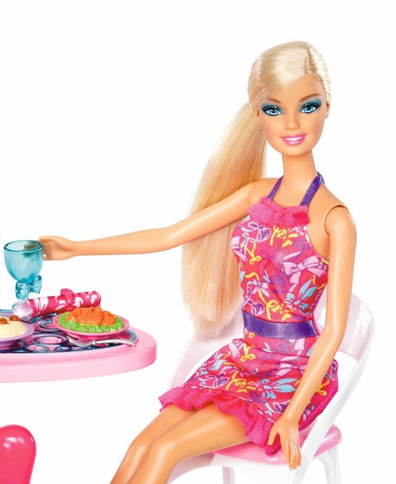 Barbie jest fanatyczką mody, chce by meble miały taki sam styl jak ona. Zestaw zawiera eleganckie szczegóły i klasyczny wygląd. Mebelki mogą być układane w różne kombinacje by stworzyć idealną jadalnię.