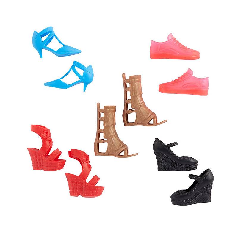 Barbie jest zawsze otwarta na nowe trendy modowe. W zestawach znajdziesz kilka par butów dostosowanych na każdą okazję i pasujących do przeróżnych kreacji. Zbierz też inne ubranka i akcesoria dla lalek Barbie, aby poszerzyć jej garderobę oraz możliwości różnorodnej stylizacji, a także, aby wzbogacić swoje opowieści.