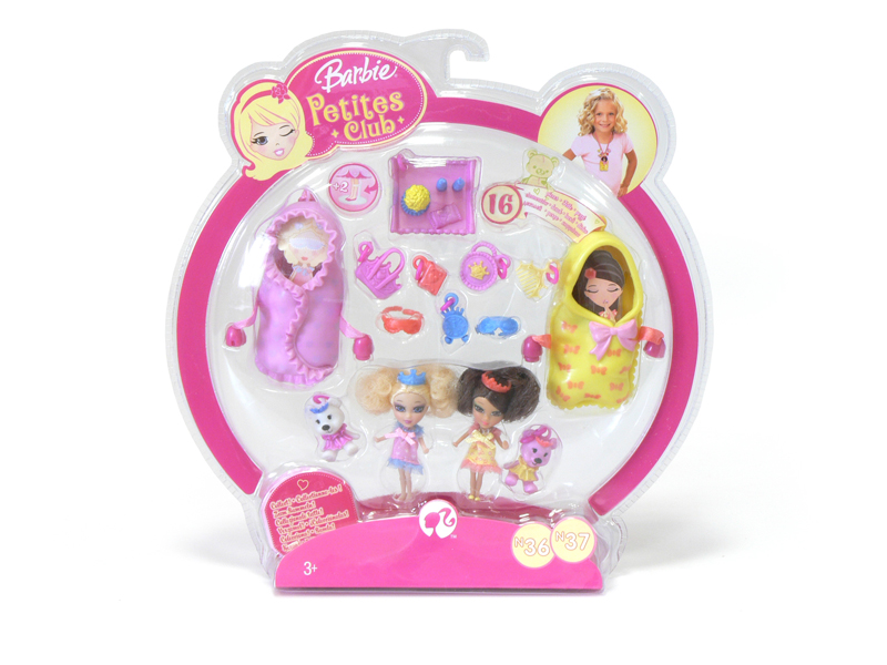 Barbie Petites Club to najnowsza seria fantastycznych mini laleczek, które będą zmogły zawsze i wszędzie towarzyszyć dziewczynkom! Laleczki Petites Club w podwójnych imprezowych zestawach. Laleczki można nosić jako naszyjniki z medalionami zaprojektowanymi w stylu imprezy piżamowej. W komplecie znajdują się breloczki i akcesoria do zabawy, którymi można się wymieniać z koleżankami.