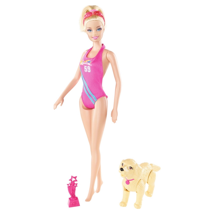 W dodatku lalka potrafi też figlować w wodzie z pieskiem, który pływa swoim własnym pieskowym stylem. Po zawodach lub po zabawie z pieskiem, Barbie może wytrzeć się ręcznikiem.