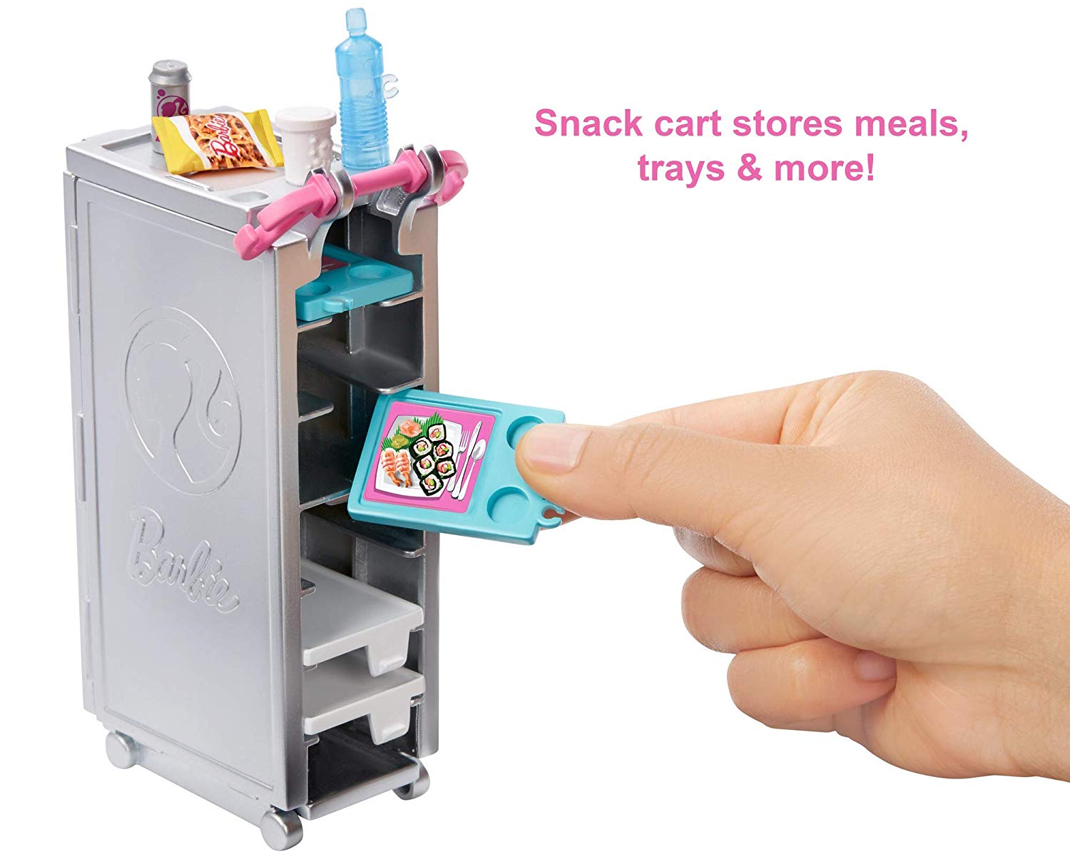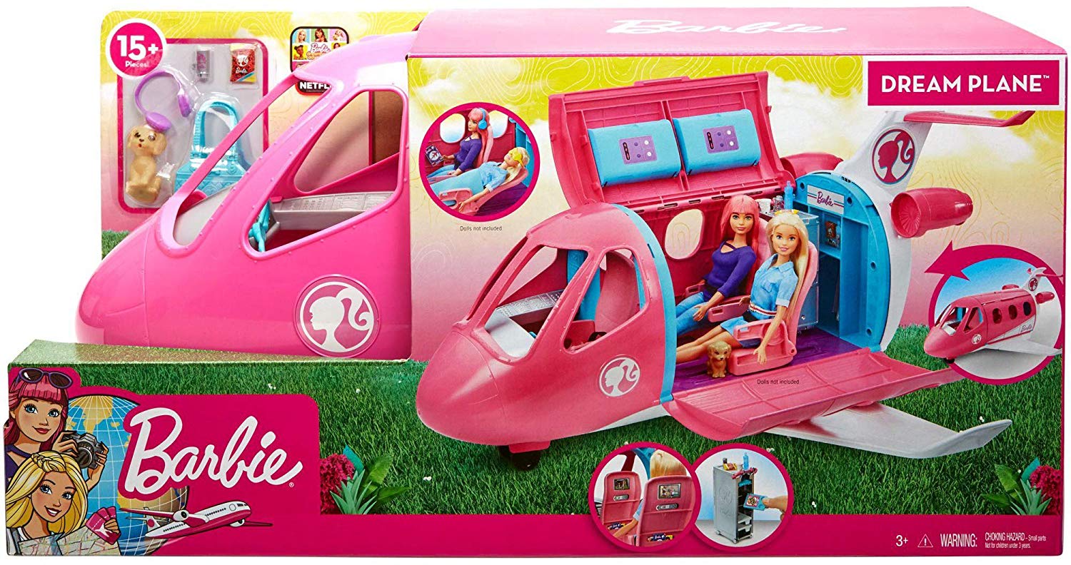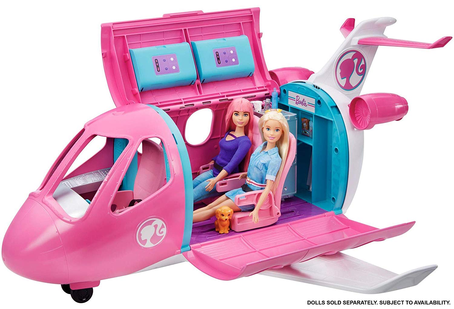Wyobraźnia dzieci poszybuje razem ze wspaniałym Samolotem Barbie. Ten piękny różowy pojazd otwiera się, odkrywając fascynującą przestrzeń do zabawy dla lalek. Wystarczy podnieść boczną pokrywę, by odsłonić realistyczne wnętrze, idealne dla komfortowej podróży. W samolocie znajduje się miejsce dla trzech lalek: pilota oraz dwóch pasażerów (lalki sprzedawane oddzielnie). Ponad 15 akcesoriów dołączonych do zestawu (takich jak słuchawki, „czasopismo", tacki czy przekąski) zachęci do realistycznej i ciekawej zabawy.