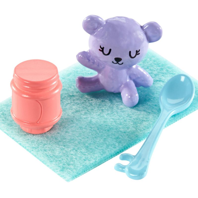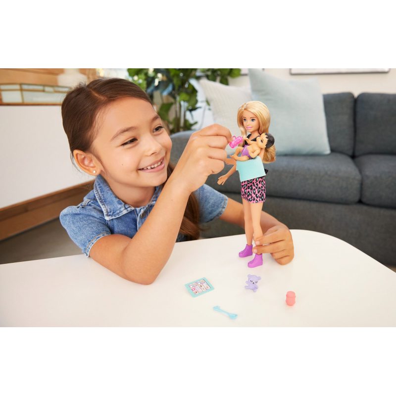 Barbie wie, że małe dzieci wymagają dużej opieki i dlatego jest gotowa na każde wyzwanie. Od karmienia poprzez drzemkę, aż do czasu na zabawę, wie jak sprawić, żeby maluszek był szczęśliwy. Do opieki nad dzieckiem Barbie ubrała się bardzo wygodnie, nie zapomniała też o podstawowych rzeczach, które przydadzą się przy opiece nad dzieckiem.