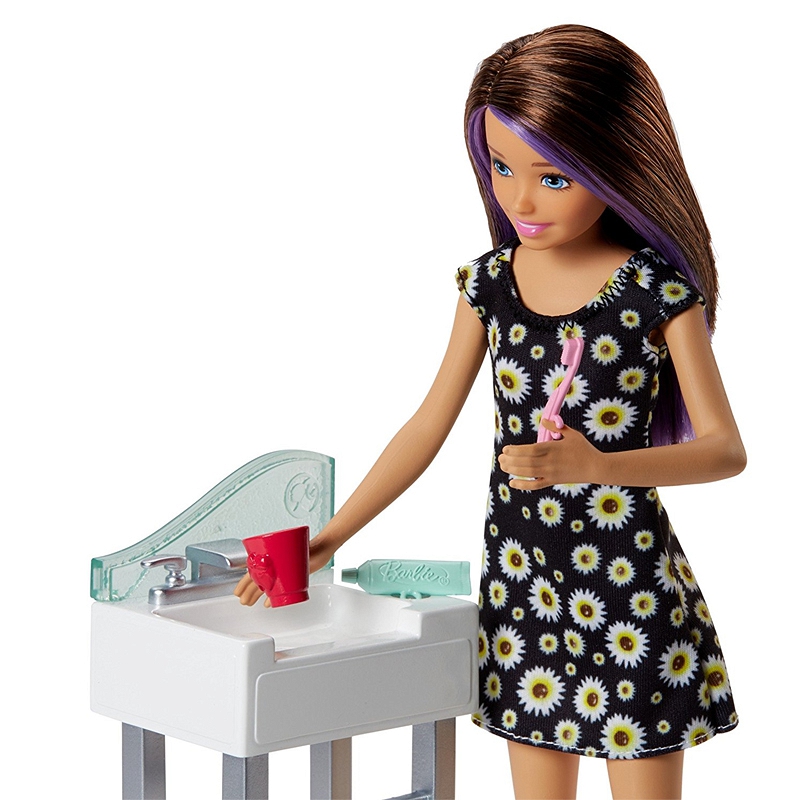Zestawy lalki Skipper™ Klub Opiekunek™ pozwolą dziewczynkom sprawdzić się w roli opiekunki do dziecka. Razem ze Skipper™ lub jedną z jej przyjaciółek, lalką dzieckiem lub niemowlęciem, a także zestawem mebelków i akcesoriów dla dzieci odegrasz klasyczne scenki. Zestaw wzbogacono o uroczą funkcję, która dodatkowo zachęca do zabawy - toaleta pokazuje postępy w nauce. Mnóstwo pobudzających wyobraźnię elementów pozwoli młodym kandydatkom na nianie sprawdzić się w tej odpowiedzialnej roli. Dziewczynki pokochają odkrywać uroki opieki nad dziećmi. Zbierz wszystkie lalki z serii Klub Opiekunek™ i akcesoria dla nich, aby wypełnić im czas mnóstwem zabawy. Zestawy do zabawy z lalkami Opiekunkami Skipper™ zawierają lalkę opiekunkę w ubranku i z akcesoriami, lalkę dziecka lub niemowlęcia i tematycznie dobrane akcesoria.