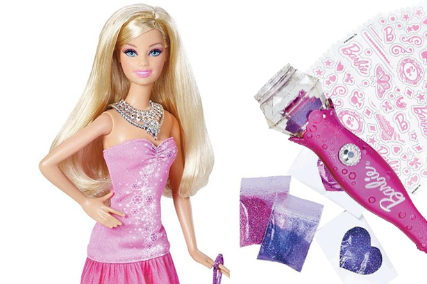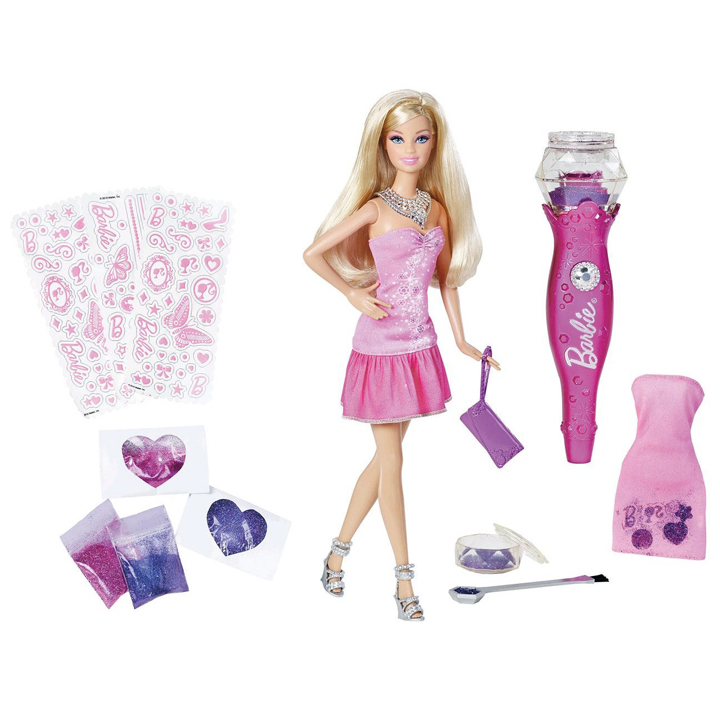 Teraz razem z Barbie możesz zostać prawdziwym projektantem mody. Zaprojektuj nowy strój dla swojej lalki. Koloruj, stylizuj i ozdabiaj sukienki Barbie za pomocą maszynki do stylizacji i szpatułki do posypywania brokatem. Przyłóż szablon do materiału, nałóż brokat i ciesz się nowym pięknym wzorem.