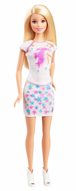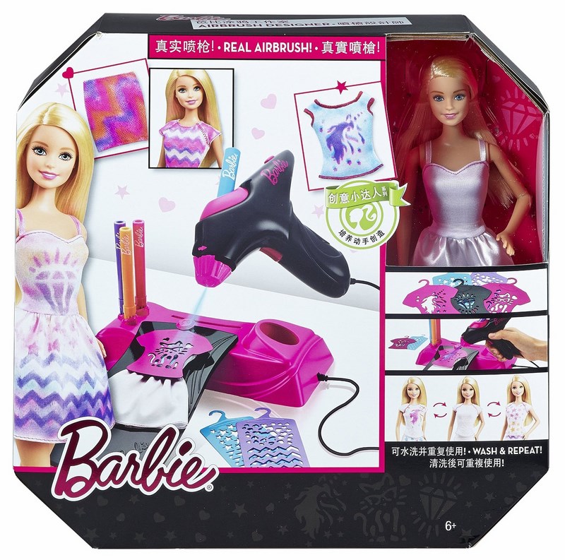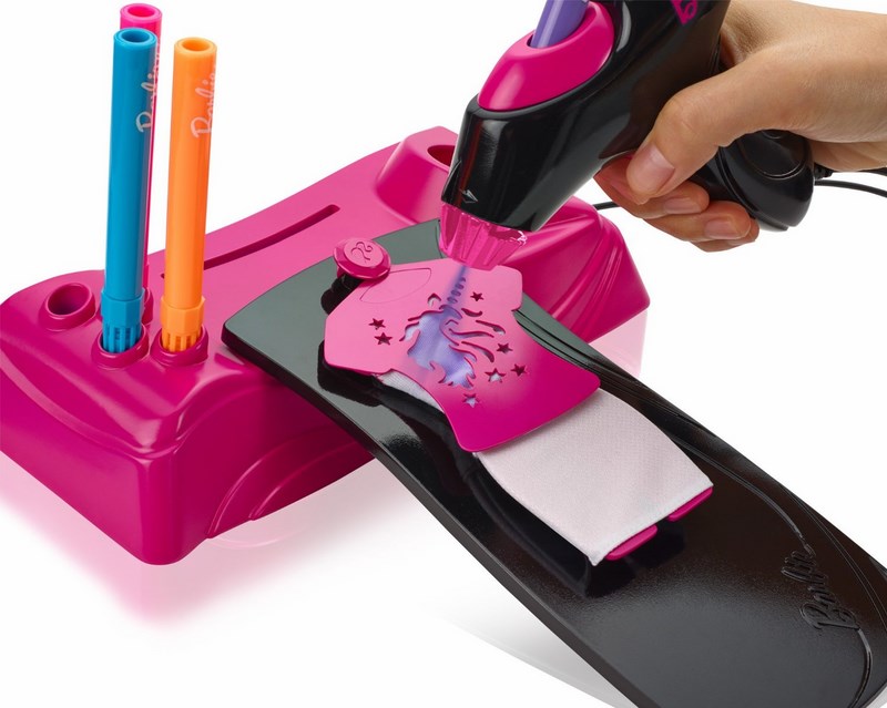 Ze Studiem Wzornictwa Barbie® dziewczynki mogą samodzielnie ozdabiać ubranka dla Barbie®, uzyskując różnokolorowe efekty! Wzory można zmyć z ubranek przy użyciu wody, dzięki czemu dziewczynki mogą tworzyć swoje projekty wielokrotnie. Przed kolorowaniem należy włożyć marker do aerografu i położyć wybrane ubranko na formie ubraniowej, a formę na pulpicie projektantki. Ubranko można ozdabiać z wykorzystaniem załączonych szablonów lub bez niego.
