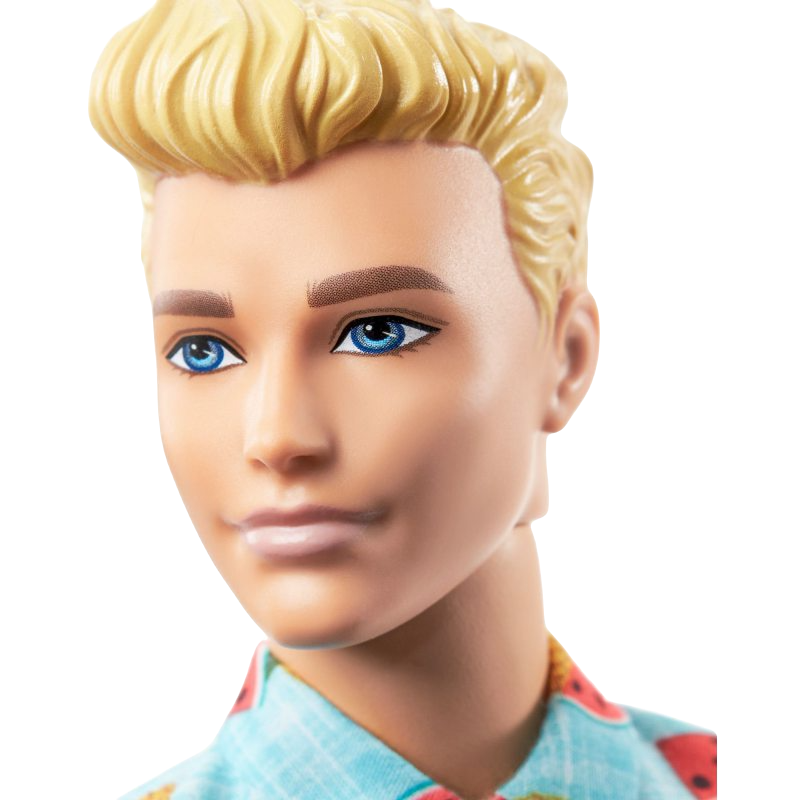 Modny Ken jest ikoną mody i luźnego, indywidualnego stylu. Ken ubrany jest w luźną swobodną kreację. Lalka ma na sobie koszulę z owocowym motywem, szorty oraz białe trampki