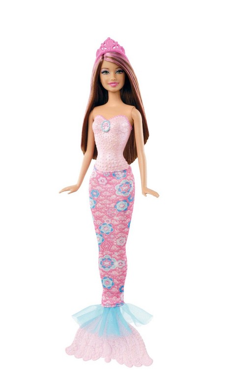 Odkryj magiczny świat Barbie razem z Syrenkami! Lalka ma na sobie gorsecik z błyszczącymi wykończeniami, na włosach kolorowe pasemka a na głowie tiarę. Jej kolorowy ogon można zdjąć, odtwarzając magiczną przemianę z syreny w dziewczynę i z powrotem. Dziewczynki mogą wymieniać ogony, płetwy i tiary pomiędzy różnymi syrenkami z tego asortymentu.