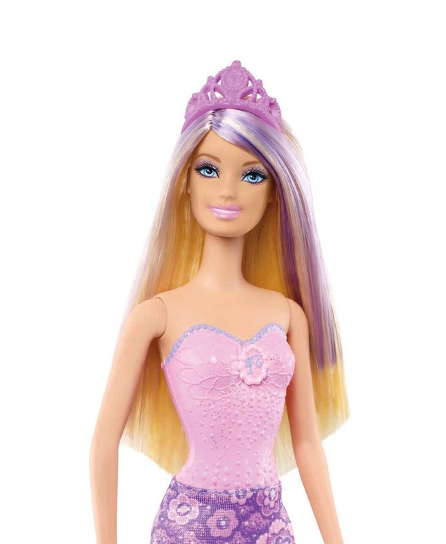 Odkryj magiczny świat Barbie razem z Syrenkami! Lalka ma na sobie gorsecik z błyszczącymi wykończeniami, na włosach kolorowe pasemka a na głowie tiarę. Jej kolorowy ogon można zdjąć, odtwarzając magiczną przemianę z syreny w dziewczynę i z powrotem. Dziewczynki mogą wymieniać ogony, płetwy i tiary pomiędzy różnymi syrenkami z tego asortymentu.