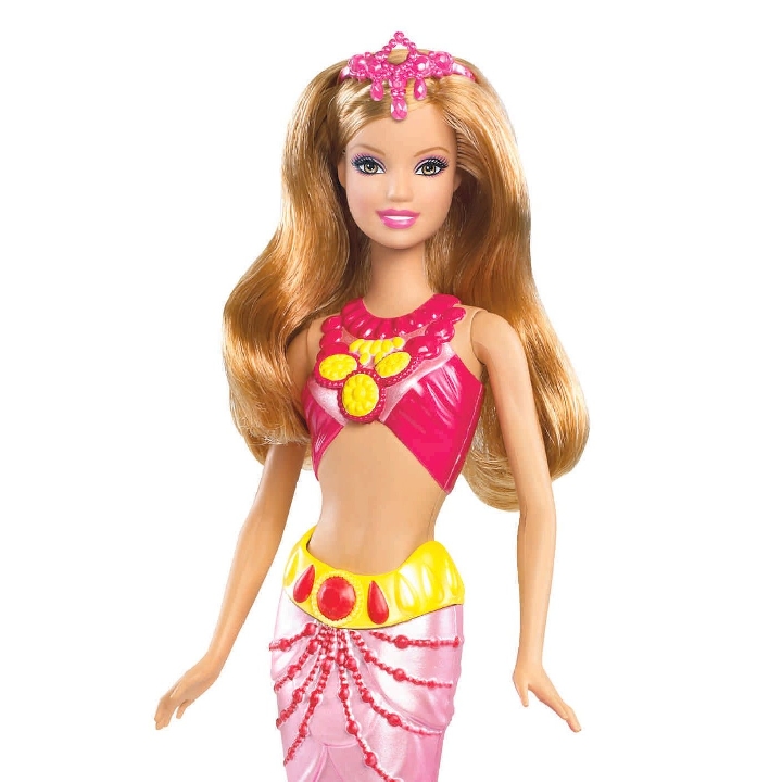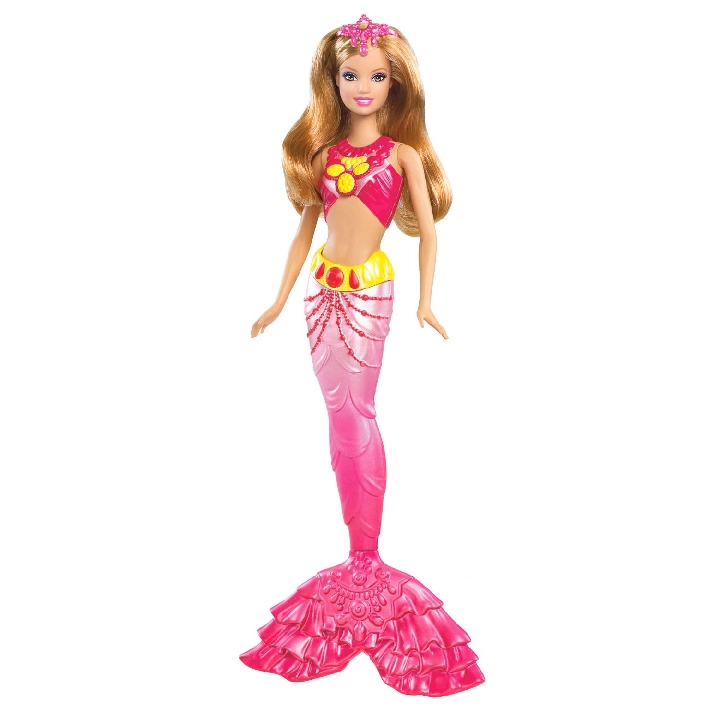 Syrenka jest jedną z bohaterek filmu "Barbie i podwodna tajemnica 2". Ta magiczna królewska syrena razem ze swoimi siostrami starała się pomóc Merliah ocalić ocean. Syrenka ma śliczny zdobiony gorset i wspaniały ogon, który czerpie swój blask z oceanów całego świata. Niezwykła uroda syrenek oraz kochana przez dziewczynki funkcja zmiany koloru - sprawią że syrenki staną się ukochaną zabawką zarówno w łazience jak i w dziewczęcym pokoju.