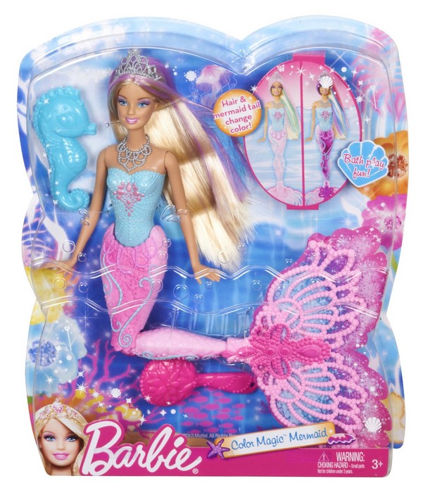 Ta urocza syrenka zmienia kolor, mieni się różnymi odcieniami przy różnych temperaturach wody! We włosach pojawiają się trzy kolory: różowy, fioletowy i niebieski. Jeszcze więcej odcieni można znaleźć na ogonie, którego kolor także się zmienia. Konik morski - zabawny towarzysz syreny - może tryskać wodą. Ogon syreny można wygiąć i w ten sposób wprawić ją w rucj, imitujący realistyczny ruch pływania.
