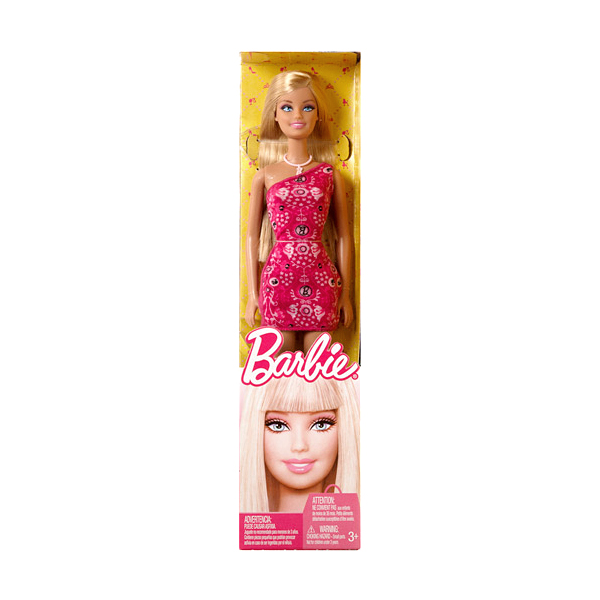 Jak zwykle modna Barbie w szykownym stylu, podkreślonym przez pełne subtelnego wdzięku letnią, oryginalną, wzorzystą sukienkę z motywami Barbie oraz dopasowany kolorystycznie naszyjnik. W komplecie są także modne buciki na koturnach.