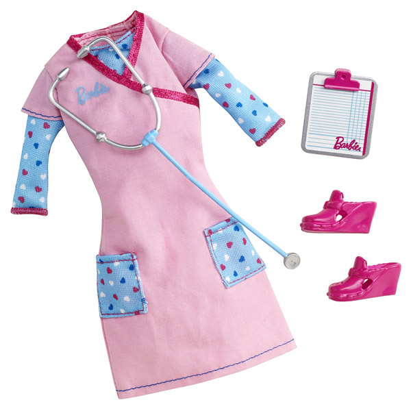 Z tą kolekjcą ubranek dla Barbie dziewczynki mogą się wcielić w role pielęgniarki. Strój utrzymany jest w stylistyce Barbie, w różowej tonacji kolorystycznej, i jest kompletny. Strój pielęgniarki obejmuje także eleganckie modne buciki oraz stetoskop do badania pacjentów.